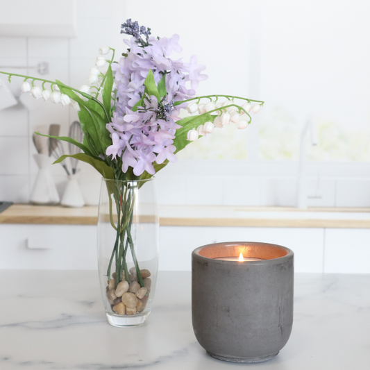 Nourish to Flourish Concrete Candle | Lilac, Lily of the Valley, & Green Leaves | 8.5oz